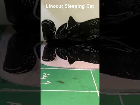 Sleepy Cat Print Handmade Linocut - Black - Green - Magenta -Original design linocut print.